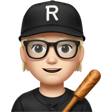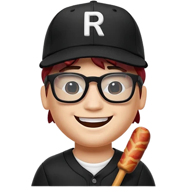 a roblox bacon that has a black baseball hat and has cool black glasses emoji