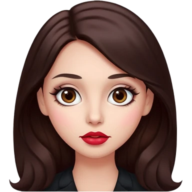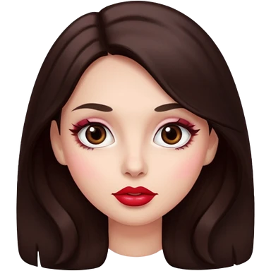 An featuring a woman with dark brown long hair, brown big eyes, light pinkish skin, red cheeks, emoji