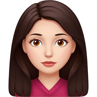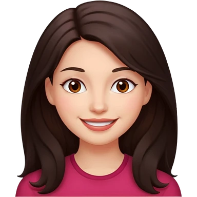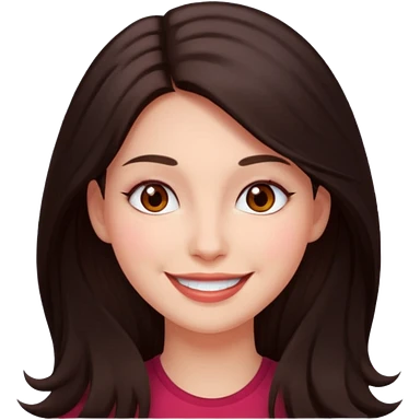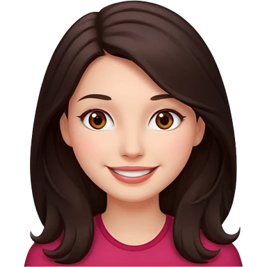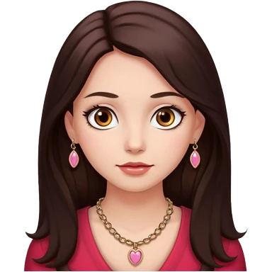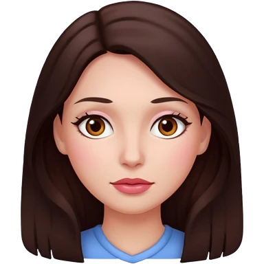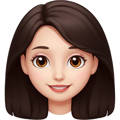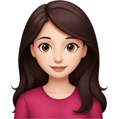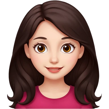 An featuring a woman with dark brown long hair, brown big eyes, light pinkish skin, red cheeks, sweet emoji