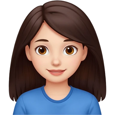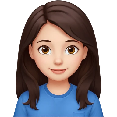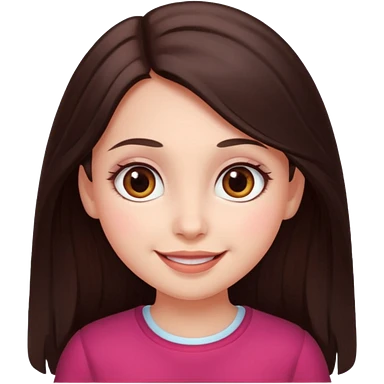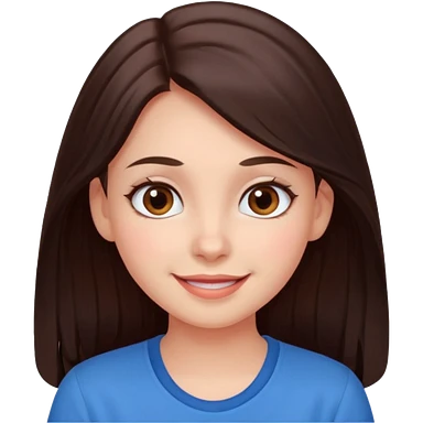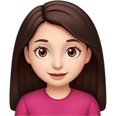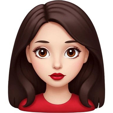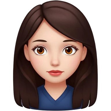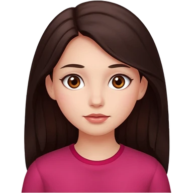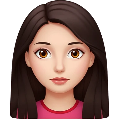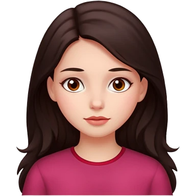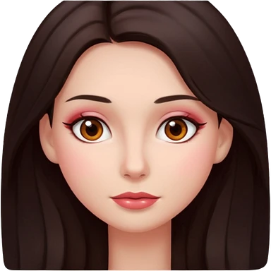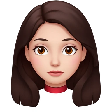 An emoji ios 18 featuring a girl with dark brown long hair, brown big eyes, light pinkish skin, red cheeks, emoji