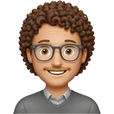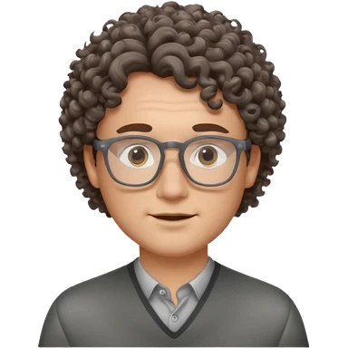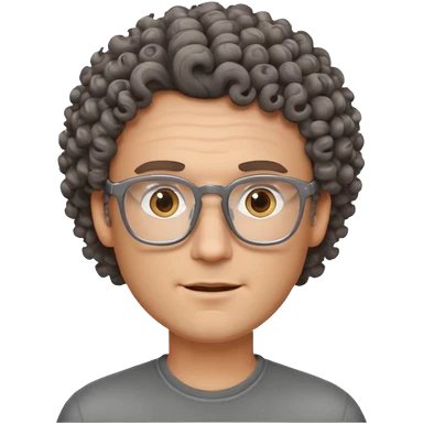 homme blanc avec cheveux marrons frisés et lunettes grise emoji