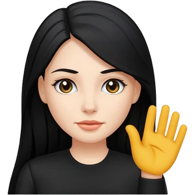 femme blanche, cheveux long, lisse et noir. Vêtement noir emoji
