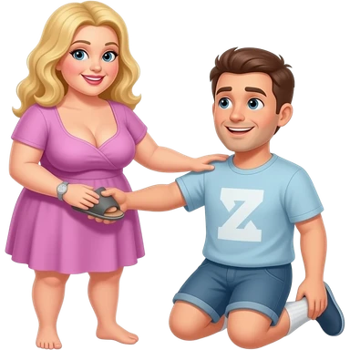 A sexy mature blonde buxom lady, spanking a naughty mans bare hottom with a slipper emoji