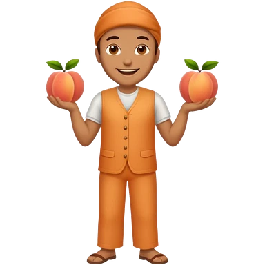 Excited pursed lip full body man emoji with a large peach where there waist would usually be emoji