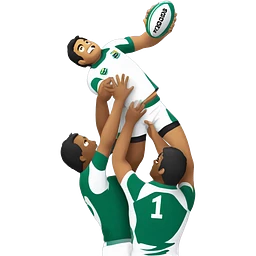 two rugby players lifting another player to catch a ball in a lineout emoji