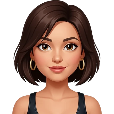hot cowgirl asian with dark brown hair. hairstyle is a bob with no bangs. she's a little tan. has hoop earrings emoji