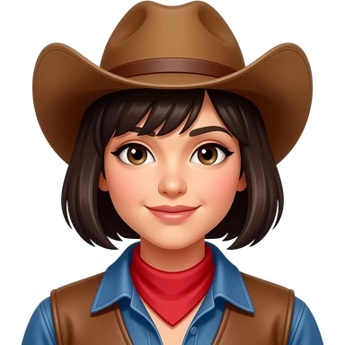 hot cowgirl asian with dark brown hair. hairstyle is a bob. emoji