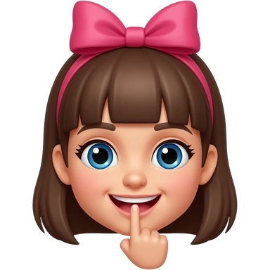 Normales gesicht mit der spitze vom zeigefinger im mund und mit einer schleife am kopf emoji