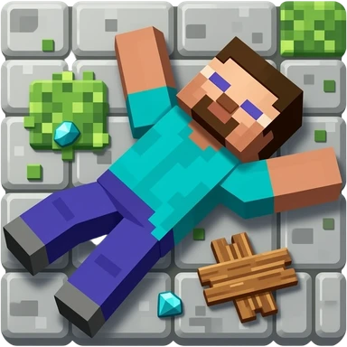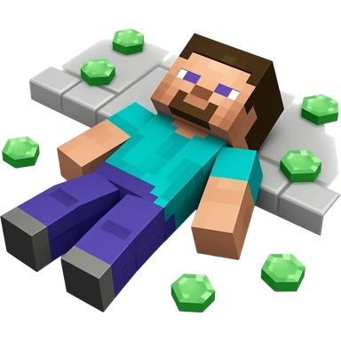 Minecraft Steve dead on the sidewalk with his eyes closed, surrounded by Minecraft drops emoji