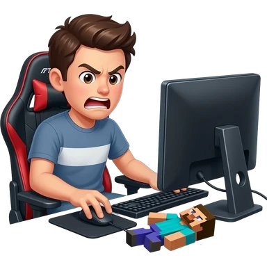 “Fuuuuuccccckkkkkk….” speech bubble with angry gamer man light skin head in hands elbow on desk emoji