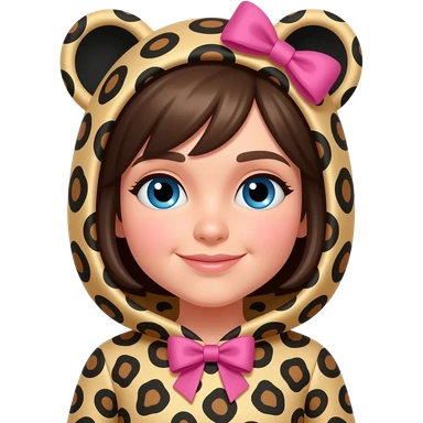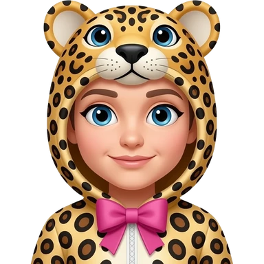 blue eyes and cheeta print clothes with a pink bow) emoji