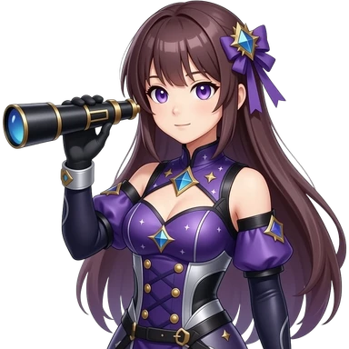 Make me a Danganronpa oc!(Utimate astromonor. Make her purple and sliver and background) emoji