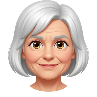 76 year old woman with white short hair and hazel eyes emoji