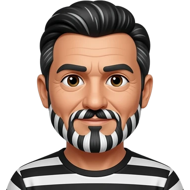60 year old man with black and little strips of white hair and black and little strips of white hair in the mustache and a goatee with black and little strips of white hair emoji