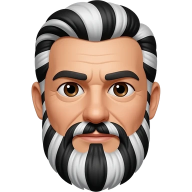 45 year old man with black and white strips of hair and dark brown eyes with a black and white strips of hair in mustache and black and white strips of hair in the bread emoji