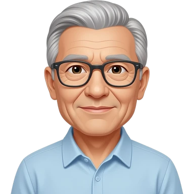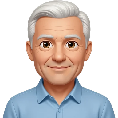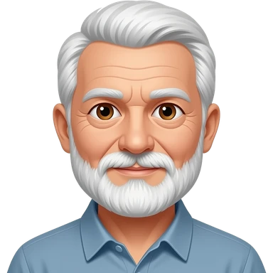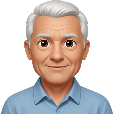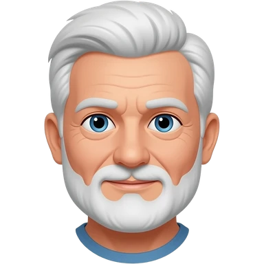 77 year old man with white short hair and a white short bread emoji