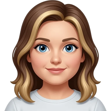 30 year old woman with brown hair and blond highlights and blue eyes a little chubby emoji