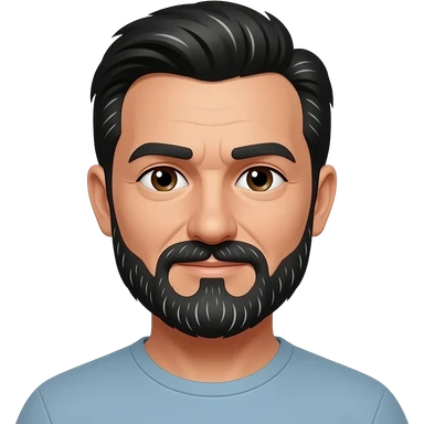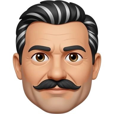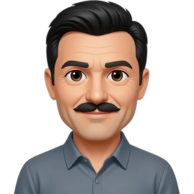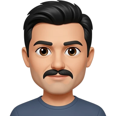 45 year old man with black hair and dark brown eyes with a black mustache emoji