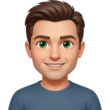 32 year old man with brown hair with green eyes emoji