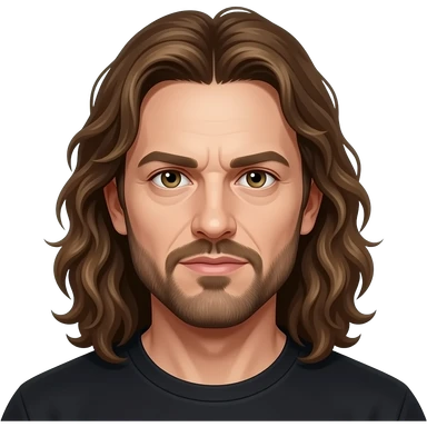 Man with curly long hair and white face with kfc bucket on his head emoji