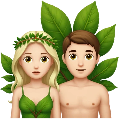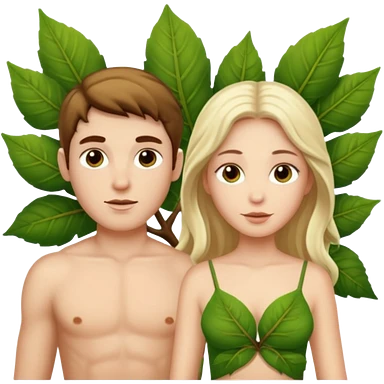 Adam and Eve with leaf clothing emoji