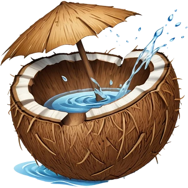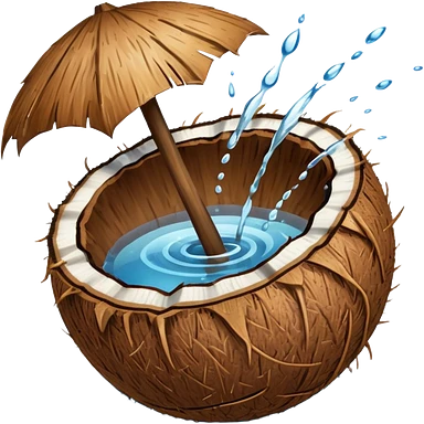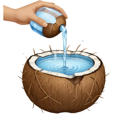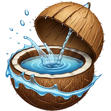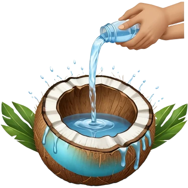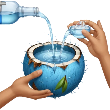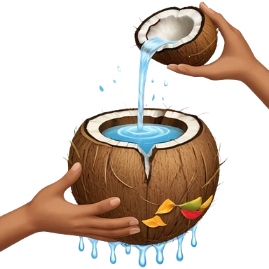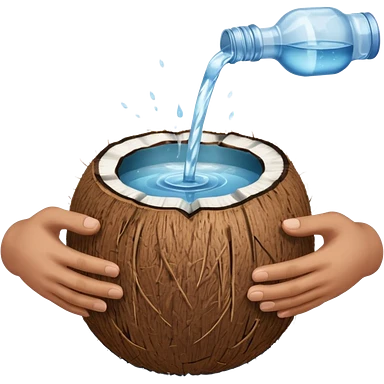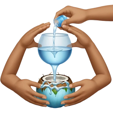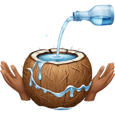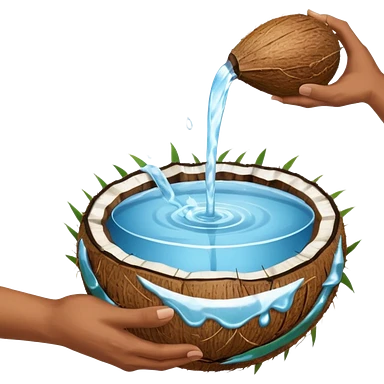 two hands with water in it, pouring the water down onto a full coconut emoji