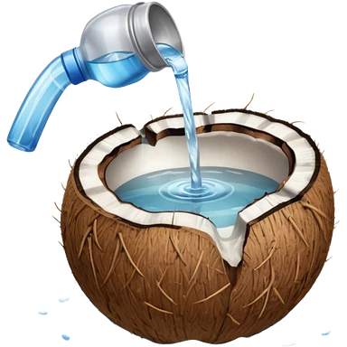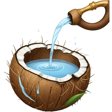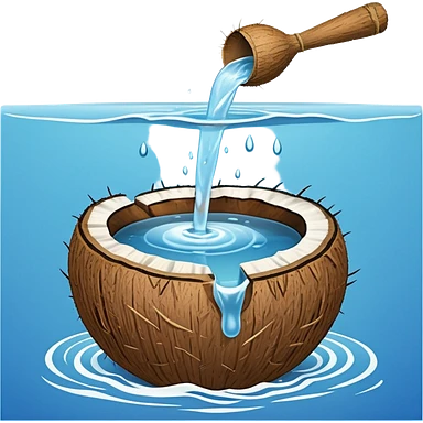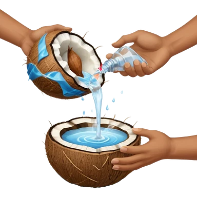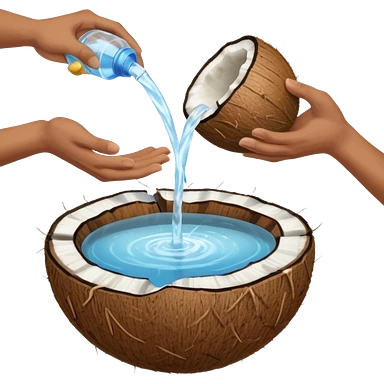 A coconut with water being poured over it. Simple line art, minimal composition showing the ritual offering. emoji
