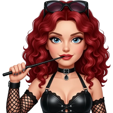 Dark red hair curly, with a whip, kinky dominatrix clothing emoji