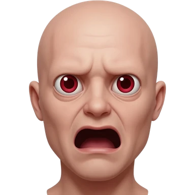 Wide bloodshot eyes with open drooling mouth and bald deformed head emoji