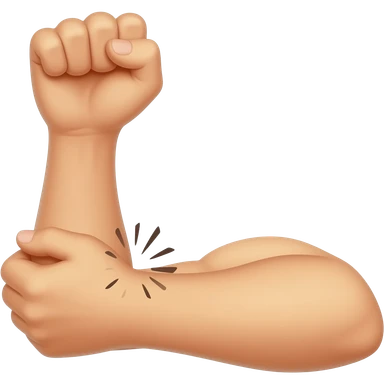 el yan dönük duruyor bir kol dirsekten bükülmüş yumruk sıkılı ve yukarı bakıyor Diğer el bükülen kolun dirsek içine Vuruşun şiddetini belirtmek için darbe noktasından çıkan küçük patlama çizgileri (💥) veya şok dalgaları eklenmiş. emoji