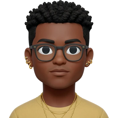 Black man with glasses, mustache, stud earrings, and an Easter egg emoji