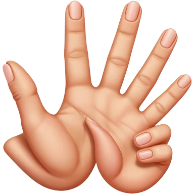 the ring finger, index finger, and middle finger facing up while the thumb and pinky finger are facing inwards towards the hand emoji