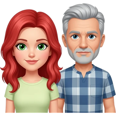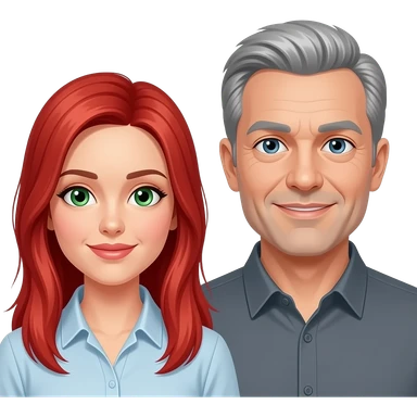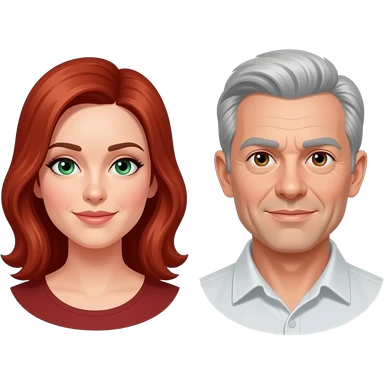 Woman with red hair and green eyes wiry man with grey hair and brown eyes emoji