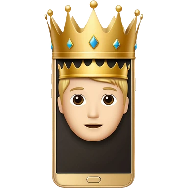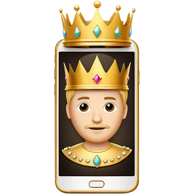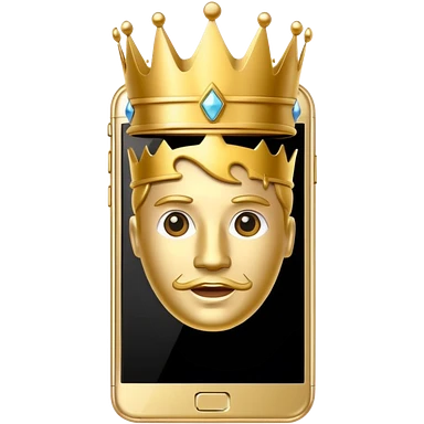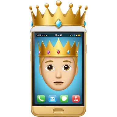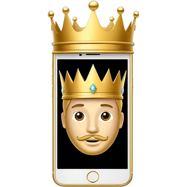 gold premium smart phone, king crown, apps on screen, no memoji emoji