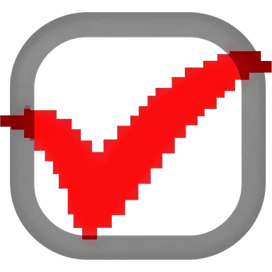 "Custom YouTube tick emoji, pixel art checkmark, red #FF0000 and black pixels, retro 8-bit style, crisp edges, transparent background, 109x109px" emoji