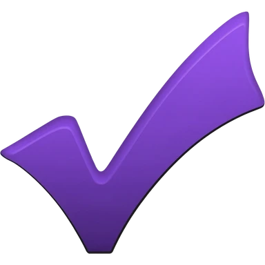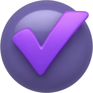 "Custom Discord tick emoji, glossy 3D checkmark, purple #5865F2 and black, shiny reflection, rounded shape, transparent background, 128x128px" emoji