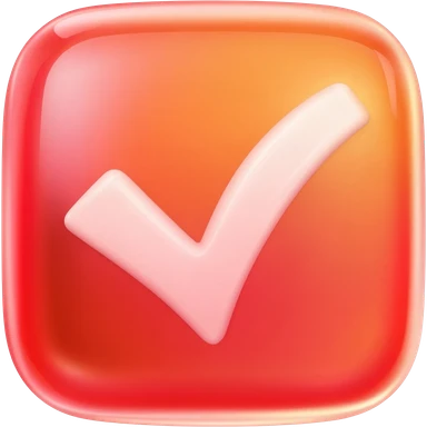"Custom YouTube tick emoji, glossy 3D checkmark, vibrant red-to-orange gradient, shiny reflection, rounded shape, transparent background, 109x109px" emoji