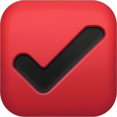 "Custom YouTube tick emoji, bold checkmark, deep red #FF0000 and black, flat minimal style, clean sharp edges, transparent background, 109x109px" emoji