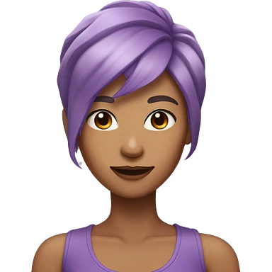 beautiful female with purple long hair hanging down with one demon horn peach skin emoji