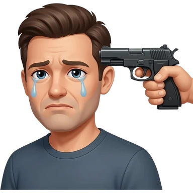 Crying face with gun pointing at his head emoji