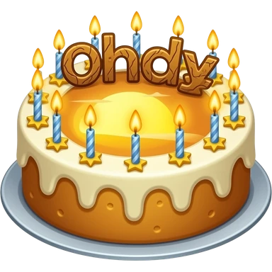 A stardew valley cake with stars and a sunset and wood letters emoji