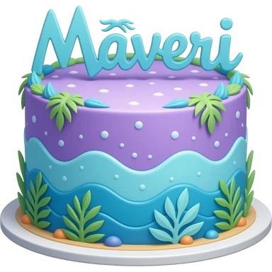 A pua from Moana purple and blue ocean cake with light blue letters saying Maveri emoji