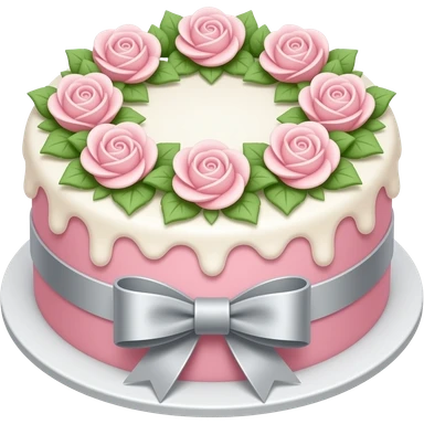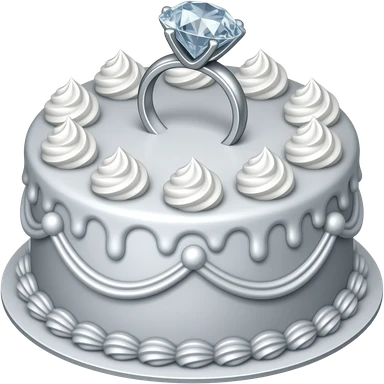 A fancy silver fancy cake with frosting and whipped cream with a diomond ring in the middle emoji