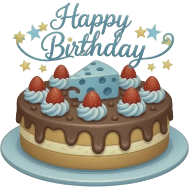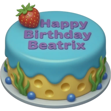 A cheese and chocolate strawberry cake that’s all blue and ocean that had starry purple letters saying happy birthday Beatrix emoji