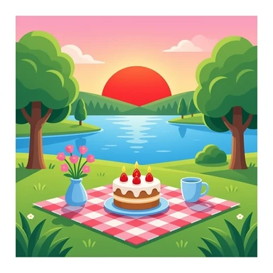 Sunrise spring picnic lake cake emoji