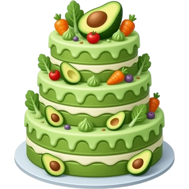 Avocado themed cake with green vegetables and green frosting and it’s cute and it has seven layers and it’s tall emoji
