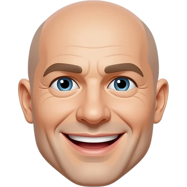 a white bald man, whit a happy face emoji
