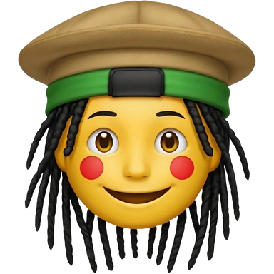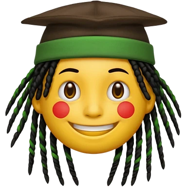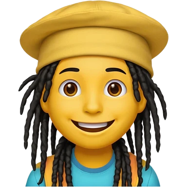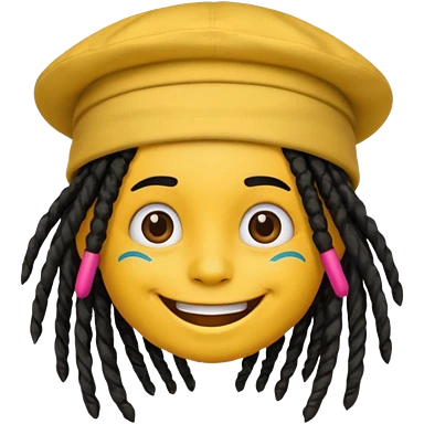 Yellow smile emoji with black dreads and a colorful hat emoji