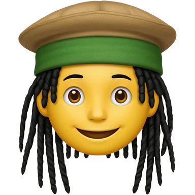 Yellow smile emoji with black dreads and a hat with yellow at the top red in the middle and green at the bottom emoji