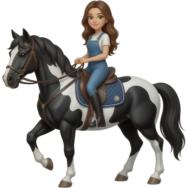 Брюнетка с зеленими глазами ездит верхом на большом чорно белом коне emoji